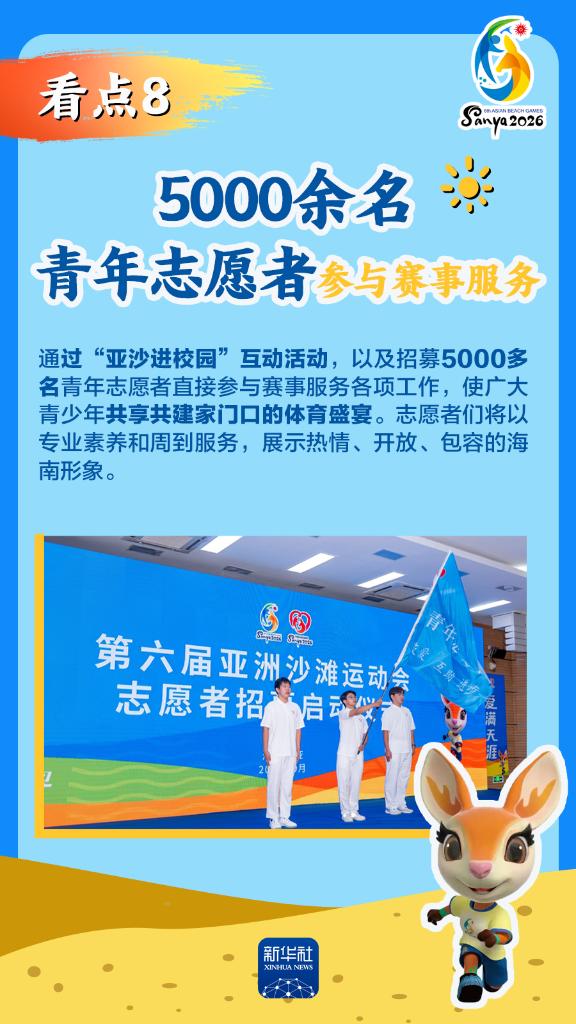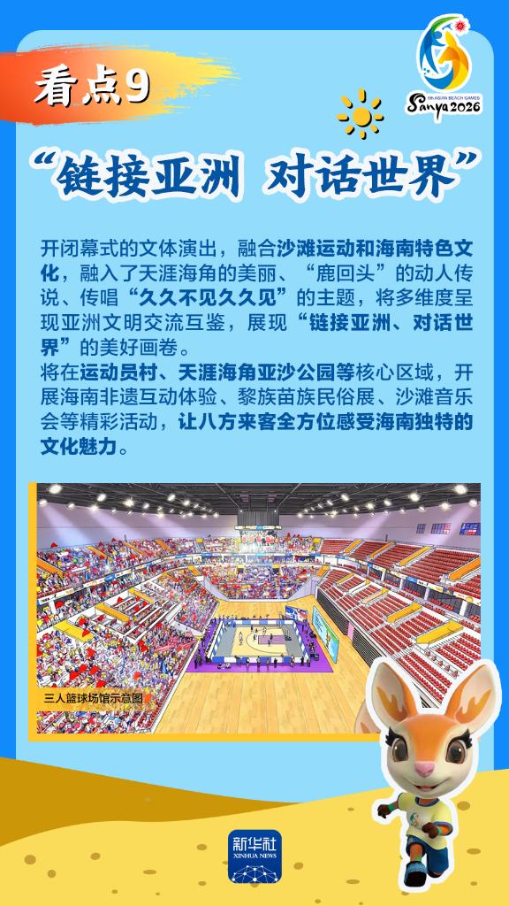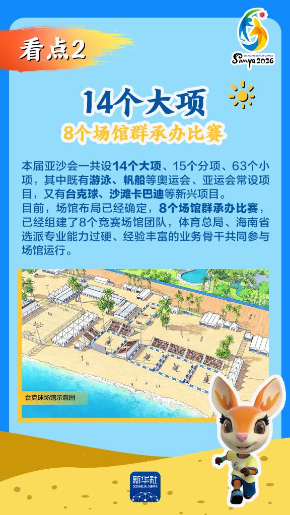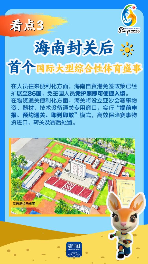 第六屆亞洲沙灘運(yùn)動(dòng)會(huì)(以下簡(jiǎn)稱“亞沙會(huì)”)將于2026年4月22日至30日在海南三亞舉行,賽事歷時(shí)9天。作為海南自由貿(mào)易港封關(guān)運(yùn)作后迎來的首個(gè)國(guó)際大型綜合性體育盛事,亞沙會(huì)都有哪些看點(diǎn)?為何值得期待?國(guó)新辦12日發(fā)布會(huì)做了詳細(xì)介紹,一起來看。