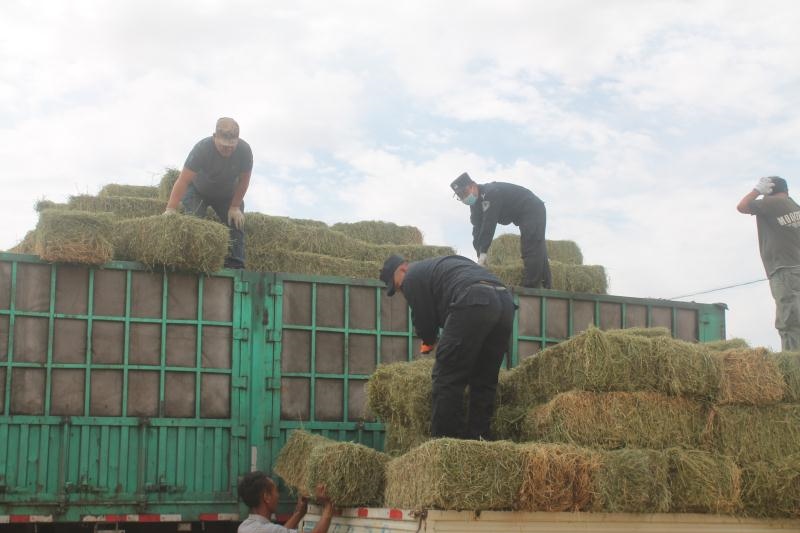 今年以來,內蒙古自治區(qū)西部的阿拉善盟持續(xù)高溫少雨,阿拉善左旗蘇宏圖地區(qū)草場退化嚴重,駝、羊等牲畜草料嚴重匱乏,影響了牧民正常生產生活。8月9日,從甘肅省購置的草料順利抵達蘇宏圖,但是由于缺少精壯勞動力,牧民們望著一車車救命的草料卻犯起了難。正當大家一籌莫展之際,派出所聞訊組織6名民警組成黨員先鋒隊投入勞動,經過3天的努力,成功將70噸1200捆草料分裝到牧民車上,受到群眾的一致好評。(牛鑫 肖鵬 梁鎮(zhèn))