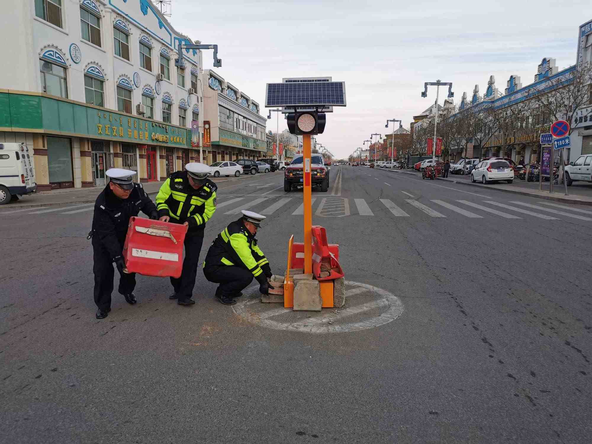 當日,阿右旗公安局交管大隊值班民警上街面巡邏,巡邏至巴丹吉林鎮(zhèn)工商十字路口處時,發(fā)現(xiàn)路口紅綠燈被撞倒,經(jīng)勘察現(xiàn)場沒有發(fā)現(xiàn)任何肇事者遺留的痕跡。