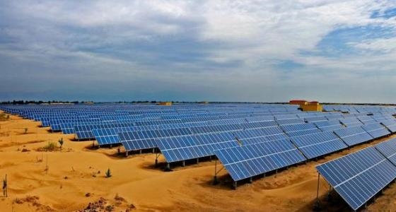 圖為梭梭林地利用光伏發(fā)電板發(fā)電。敖琪 攝