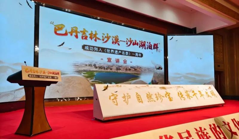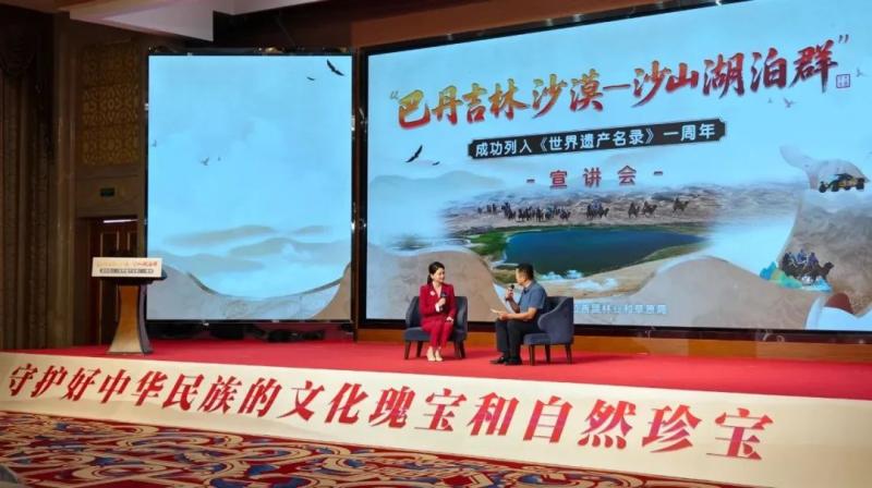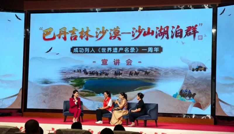 宣講會(huì)上,知名專(zhuān)家、一線工作者、志愿服務(wù)隊(duì)代表等宣講嘉賓和文旅從業(yè)者齊聚一堂,通過(guò)主題宣講、人物訪談的形式,共同回顧了“巴丹吉林沙漠—沙山湖泊群”申遺成功一周年以來(lái)的保護(hù)成果,立體展現(xiàn)了巴丹吉林沙漠的生態(tài)價(jià)值、保護(hù)實(shí)踐與時(shí)代意義,探討這片世界自然遺產(chǎn)的未來(lái)發(fā)展之路。