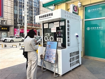 位于青山區(qū)萬達(dá)廣場(chǎng)北門的便民核酸采樣點(diǎn)