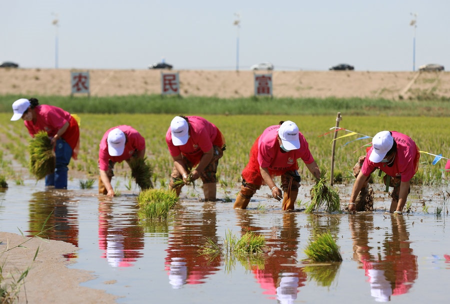 6月18日,2022年包頭市首屆插秧節(jié)暨“網(wǎng)約游東河·玩轉(zhuǎn)新農(nóng)村”主題活動在此間舉行。當天,來自東河區(qū)的20支插秧隊伍,走進烈日炎炎的水田,挽起褲管,穿上水靴,進行了一場別開生面的插秧大賽。