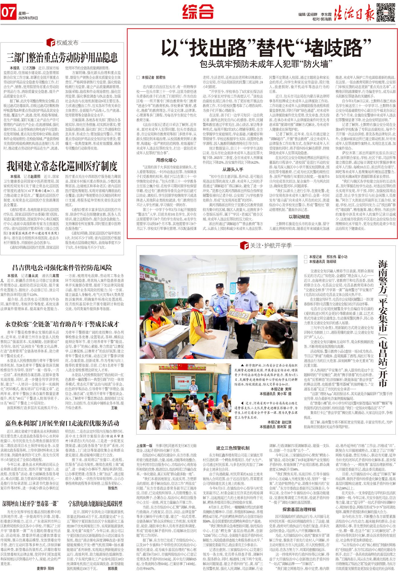 “我們與轄區(qū)各學(xué)校建立良好的互動關(guān)系,及時掌握在校學(xué)生動態(tài),對違法犯罪的苗頭實現(xiàn)早發(fā)現(xiàn)、早干預(yù)。同時,加強校園周邊巡邏,防止學(xué)生放學(xué)后與社會閑散人員接觸。”阿爾丁大街派出所副所長王磊介紹,家庭、學(xué)校、社區(qū)、公安同向發(fā)力,以“找出路”替代“堵歧路”,精準(zhǔn)施策、暖心幫扶。當(dāng)派出所的案卷中涉及未成年人的案件記錄日益減少,這座城市收獲的不僅是社會治安綜合治理精細化水平提升,更為寶貴的是青少年在法治陽光下健康成長。(記者 郭君怡)