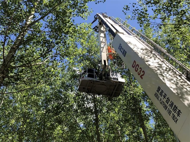 原來(lái),6月4日11時(shí)30分許,曹先生來(lái)到赤峰市寧城縣汐子鎮(zhèn)北山咀村準(zhǔn)備進(jìn)行水域測(cè)繪,航拍的過(guò)程中,價(jià)值30多萬(wàn)元的無(wú)人機(jī)突然消失了,曹先生四處尋找,才發(fā)現(xiàn)無(wú)人機(jī)被掛到了一棵很高的樹(shù)枝上,反復(fù)操作多次,無(wú)人機(jī)始終沒(méi)有動(dòng)靜,疑似被卡住了,一籌莫展的他撥打了報(bào)警電話(huà)。赤峰市消防救援支隊(duì)寧城縣哈河大街消防救援站接到報(bào)警后,立即出動(dòng)1輛32米登高平臺(tái)消防車(chē)及4名消防員趕赴現(xiàn)場(chǎng)進(jìn)行救助。