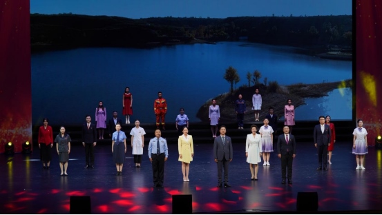 當(dāng)天,舞蹈《火種》拉開了詩歌誦讀會(huì)的序幕。本次詩歌朗誦會(huì)從“紅色記憶”“信仰相隨”“奮進(jìn)新程”三個(gè)篇章依次展開,共14個(gè)紅色主題作品。表演者用心感悟、用情演繹,或鏗鏘有力、或婉轉(zhuǎn)悠揚(yáng)、或慷慨激昂,以集體誦讀、個(gè)人誦讀、情景劇表演等不同風(fēng)格、不同表現(xiàn)形式,將《我是一艘船》《紅色家書》《重逢》《黨啊,我的母親》《英雄》《信念永恒》《我們從哪里來—鄂前旗的紅色記憶》《我如果贊你》《奮進(jìn)有我》等紅色經(jīng)典篇章盡情呈現(xiàn)。一篇篇紅色經(jīng)典作品,表達(dá)著對(duì)中國共產(chǎn)黨百年來帶領(lǐng)中國人民艱苦奮斗、與時(shí)俱進(jìn)、奮斗追夢(mèng)的偉大實(shí)踐的贊頌,處處展現(xiàn)了鄂托克前旗廣大黨員干部群眾昂揚(yáng)奮進(jìn)的精神風(fēng)貌。