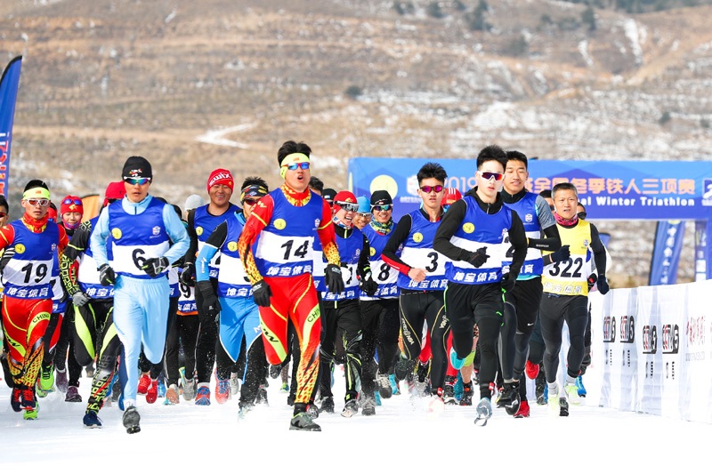 2月24日,參賽選手在冬季鐵人三項賽跑步比賽中。當日,2019年全國冬季鐵人三項賽在烏蘭察布市涼城縣岱海國際越野滑雪場開賽,比賽包括跑步、山地自行車和越野滑雪三個比賽項目,設置男女子精英組和男女子公開組,吸引了來自北京、黑龍江、寧夏等地的120余名選手參賽。這是我區(qū)首次舉辦全國冬季鐵人三項賽,此舉將進一步豐富我區(qū)冬季體育運動項目,推動冰雪運動發(fā)展?!让晒湃請笊缛诿襟w記者 于濤 攝