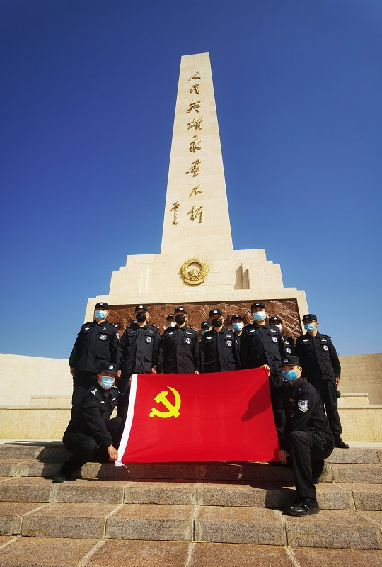 在紀(jì)念碑前,隊(duì)員們面對(duì)鮮紅的黨旗,高舉右手莊嚴(yán)宣誓。通過(guò)重溫入黨誓詞,進(jìn)一步增強(qiáng)了黨員民警輔警的使命感、責(zé)任感和榮譽(yù)感,表達(dá)了對(duì)黨、對(duì)人民的無(wú)限忠誠(chéng)和堅(jiān)定信念。