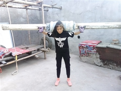 用工地上撿來(lái)的木頭樁和繩子制作的簡(jiǎn)易牽引機(jī),加了墊子的木凳做跳躍訓(xùn)練,用木頭和海綿做的啞鈴……走進(jìn)呼和浩特市土默特左旗察素齊鎮(zhèn)鄭國(guó)花的家里,由父親耗時(shí)半個(gè)月打造的簡(jiǎn)易健身房就是鄭國(guó)花每天訓(xùn)練體能的地方。鄭國(guó)花在土默特左旗第一中學(xué)高一就讀,每天凌晨4點(diǎn)多,父女二人就準(zhǔn)時(shí)出現(xiàn)在察素齊鎮(zhèn)街頭的柏油路和體育場(chǎng)里。從小學(xué)六年級(jí)到高一,訓(xùn)練從不懈怠,一堅(jiān)持就是5年?!捌鋵?shí)最初讓孩子練習(xí)中長(zhǎng)跑,主要是為了鍛煉孩子的身體。女兒4個(gè)月大的時(shí)候,她媽媽就離開了,我一直又當(dāng)?shù)之?dāng)媽把她拉扯大,但這娃娃身體一直不好,不怎么吃飯,身體十分瘦弱,直到上小學(xué)六年級(jí)的時(shí)候,連一碗飯都吃不進(jìn)去。我一看再這么下去身體指定是要垮掉的,就想著讓她練習(xí)跑步,能多吃點(diǎn)飯。因?yàn)槲沂擒娙顺錾?,以前也是運(yùn)動(dòng)員,和女兒商量后,她也同意了,我們就開始跑步。第一個(gè)月,她還追不上我,但飯量確實(shí)見長(zhǎng),到了第二個(gè)月,我就追不上她了,我開始騎著自行車陪她跑,再后來(lái)自行車追不上了,我就騎了一輛三輪車,三輪車也不行了,干脆買了一輛摩托車,這么多年從沒間斷過(guò)。”7月19日,鄭龍?jiān)诮邮苡浾卟稍L時(shí)表示,對(duì)于女兒,她最大的希望是女兒健健康康的,以后能進(jìn)入北京體育大學(xué),將來(lái)能進(jìn)入國(guó)家隊(duì),為國(guó)爭(zhēng)光。
