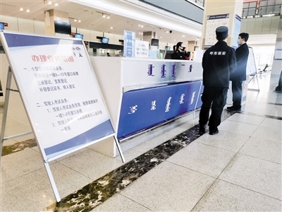 “你好!違章查詢和罰款繳納需要去交管隊(duì),不在這里辦理。如果是本人車輛,也可下載12123 APP進(jìn)行辦理?!?月18日9時(shí)10分,記者走進(jìn)呼和浩特市交警支隊(duì)車輛管理所,在政務(wù)服務(wù)中心東大廳正對(duì)著大門的導(dǎo)辦臺(tái),一位民警正在接受市民業(yè)務(wù)咨詢。記者看到,大廳里往日喧囂熱鬧的場(chǎng)景不見(jiàn)了,只有零星幾位市民在辦理業(yè)務(wù)。