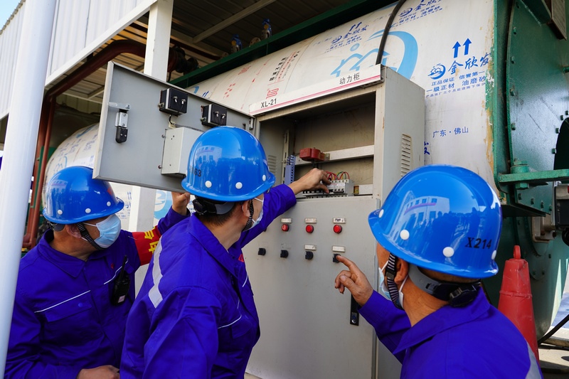 演練伊始,參加演習(xí)的運營所、司爐車間、檢修車間、電氣車間、儀表車間、設(shè)備處、安保處等人員按照預(yù)設(shè)的情境,各司其職,開始了管路連接、電源接入、鍋爐調(diào)試,再進(jìn)行循環(huán)泵、補水泵盤車的調(diào)試,以及補水、循環(huán)泵啟動、鍋爐點火等等一系列有條不紊的實戰(zhàn)操作。