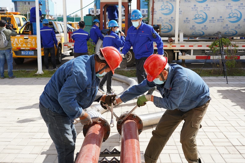 9月29日上午10點,在兩級政務(wù)服務(wù)中心熱力站前,隨著演練總指揮城發(fā)供熱公司辛家營分公司副經(jīng)理鄭紅飛的一聲令下,移動熱源應(yīng)急演練正式開始。