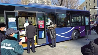 2月28日上午,在呼和浩特市新華大街附近,一輛敞開了玻璃窗的公交車??吭诘缆放?,居民們按照規(guī)定間隔排隊(duì),依次來到公交車前進(jìn)行核酸采樣,醫(yī)務(wù)人員坐在車廂座椅有序地為市民進(jìn)行核酸采樣,受檢人員不用上車,站在窗外,采完即走。