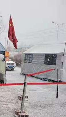 由于從第三輪核酸檢測開始,規(guī)定采樣時間為6:30準(zhǔn)時開始,現(xiàn)場工作人員須在5:30前準(zhǔn)備就緒。恰逢冷空氣來襲,早晨的氣溫低至零下二十幾度,但所有的人,都恪守崗位,特別是那些采樣員,她們都是來自市區(qū)各大醫(yī)院前來支援武川防疫的醫(yī)護(hù)人員,在家里,她們還都是父母的孩子,而此刻,她們都是個頂個的戰(zhàn)士。