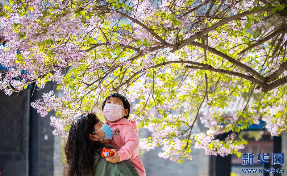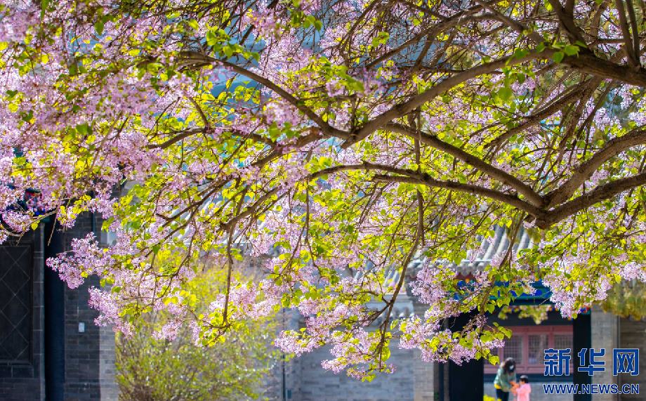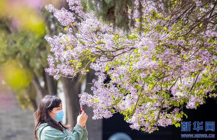 4月20日,市民在位于呼和浩特市的內(nèi)蒙古將軍衙署博物院觀賞盛開(kāi)的丁香花。新華網(wǎng)發(fā)(丁根厚 攝)