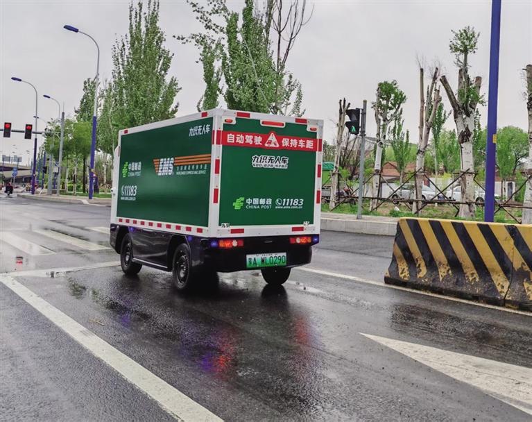 打開專屬App,掃碼開啟車廂,放入快件,關(guān)車廂,發(fā)送指令,無(wú)人快遞車上路了。這是記者5月9日在呼和浩特市郵政分公司(以下簡(jiǎn)稱“公司”)寄遞事業(yè)部直投中心看到的一幕。