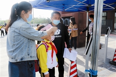 “等了這么久,終于可以和同學(xué)們說句:早上好。”6月2日,早上7點剛過,通遼新城第一中學(xué)小學(xué)部二年一班的班主任崔老師早早的在校門口,迎接班里的小朋友們。記者在校門口看到,此時,小學(xué)部二、三年級的小朋友已經(jīng)陸續(xù)入校了,顯然,“萌娃”們已經(jīng)被校門口的層層關(guān)卡震撼到了,幸好,在眾多老師的幫助和指引下順利進入了校門。進入了校門后,還有一道重要關(guān)卡,測量體溫,習(xí)慣了伸出手臂來測量體溫的“萌娃”們,對著紅外線測溫儀卻不知所措了,有的對著測溫儀伸出了手臂、有的對著測溫儀行禮,著實“萌”翻了現(xiàn)場所有人。“崔老師,我們都想你了?!币姷綆孜恍∨笥岩獪惖礁皟?,崔老師立刻提醒同學(xué)們:我也很想念你們,但是我們要保持“一米”的距離,快去教室吧!小朋友們被“殘忍”拒絕,很是失落。