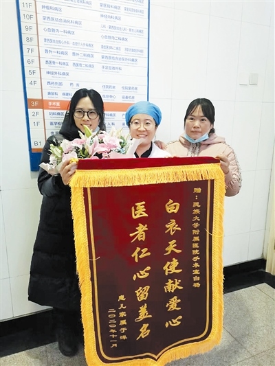 11月27日,當(dāng)孩子已經(jīng)好轉(zhuǎn)出院,王欣影沒有忘記那一夜遇到的好心人,她再一次撥通白楊的電話,此時(shí),她才得知白楊就是附屬醫(yī)院手術(shù)室的一名護(hù)士。她將一面寫有“白衣天使獻(xiàn)愛心醫(yī)者仁心留美名”的錦旗送到了白楊的手中,她說:女兒又多了一位媽媽。白楊也向記者講起了那晚的經(jīng)歷,她說:“其實(shí),那晚我是去接我丈夫的,由于暴雪,丈夫被困在了米家科技園附近,我開車去接他,在回來的路上,看到有車輛遇險(xiǎn),心想,這樣惡劣的天氣,遇到誰有困難就應(yīng)該幫一把,當(dāng)時(shí),我們也沒有多想,我也是做母親的,看到夫妻倆那么焦急,我只想把孩子快點(diǎn)送到醫(yī)院,好在有驚無險(xiǎn),孩子平安無事。”后來,記者還了解到,當(dāng)把孩子送到醫(yī)院后,白楊已渾身濕透,待孩子已經(jīng)搶救上,安頓好王欣影后,已經(jīng)是凌晨5點(diǎn),天也蒙蒙亮了,白楊沒有回家,一夜未眠的她,留在了工作崗位上。