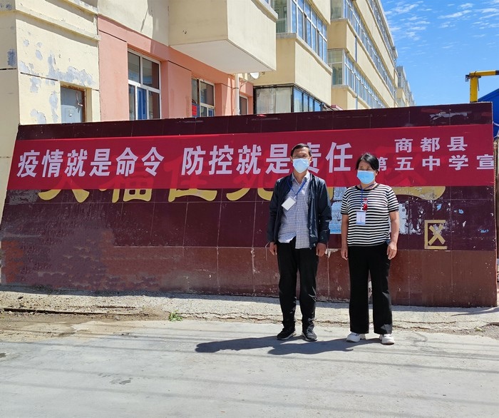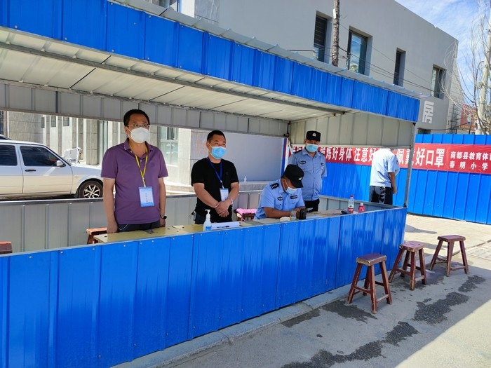 在學(xué)校站在三尺講臺(tái),拿起書本,面向孩子,他們是一名光榮的人民教師。走上抗疫一線,穿上白底藍(lán)邊的防護(hù)服,拿起測(cè)溫儀,他們是一名光榮的抗疫防疫工作者。以師者擔(dān)當(dāng),同心戰(zhàn)“疫”,眾志成城,商都必勝!