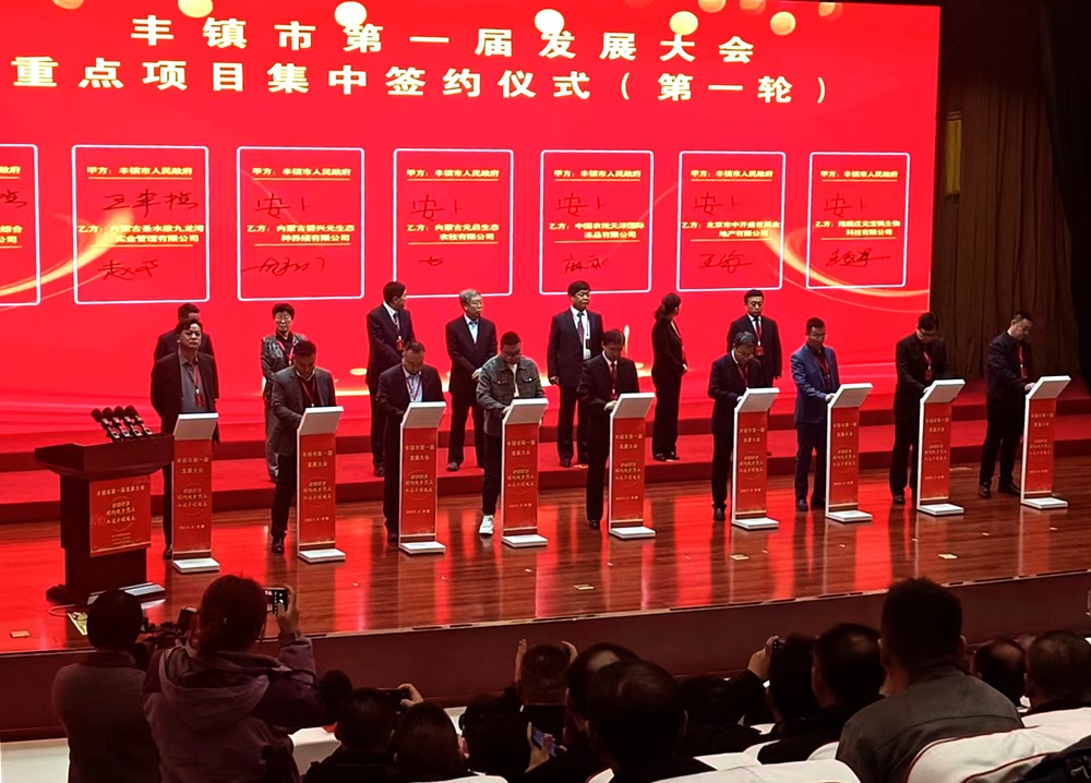 豐鎮(zhèn)市第一屆發(fā)展大會重點(diǎn)項(xiàng)目集中簽約儀式。新華網(wǎng) 發(fā)
