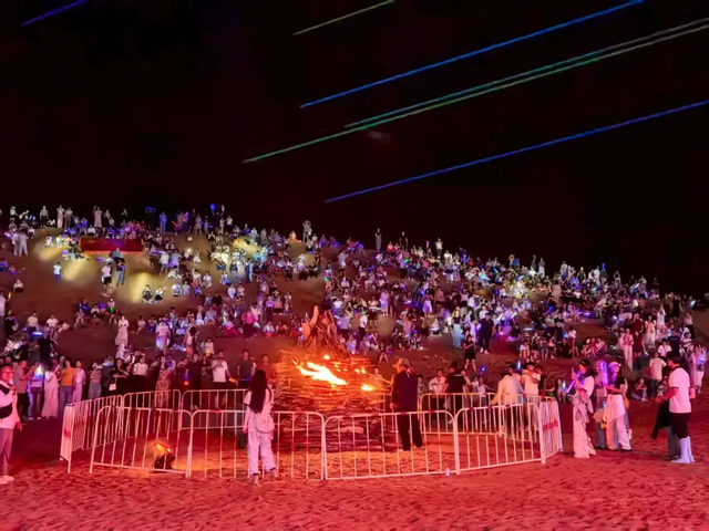 緊扣地域特色文化,創(chuàng)新產(chǎn)品供給,是烏海文旅保持“長(zhǎng)紅”的流量密碼。8月2日,夜幕降臨、華燈初上,烏海湖休閑度假旅游區(qū)的“英雄坡”上一場(chǎng)特殊的音樂會(huì)火熱開場(chǎng)。主題音樂會(huì)、篝火狂歡、煙花秀依次上演,點(diǎn)燃沙漠的夜晚,讓游客在星空下感受別樣風(fēng)情。