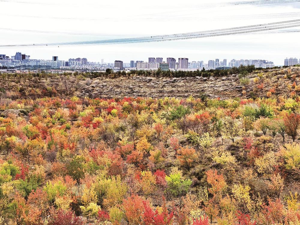 如果說黃河岸邊的秋景是溫柔的,那么甘德爾山的秋景則多了幾分豪邁與壯闊。沿著登山步道向上攀登,山路兩旁的灌木叢已經(jīng)變成了紅色、黃色、橙色,五彩斑斕,層層疊疊,像大自然打翻了調(diào)色盤。站在山頂俯瞰,整個烏海市區(qū)盡收眼底,黃河像一條金色的絲帶纏繞在城市邊緣。秋風在耳邊呼嘯,帶著山間的清涼,讓人瞬間忘卻了城市的喧囂與煩惱。