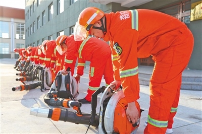 森林消防隊(duì)員正在進(jìn)行防滅火應(yīng)急演練。