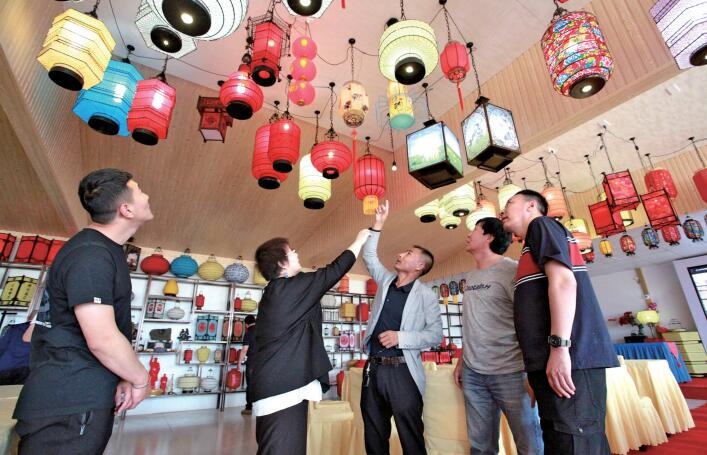 “我們有手工編織的宮燈、紗燈、吊燈等180多種款式的燈籠供消費者選擇?!苯?,自治區(qū)級非物質(zhì)文化遺產(chǎn)項目——燈籠編織技藝傳承人杜學(xué)龍給游客介紹自己的產(chǎn)品。