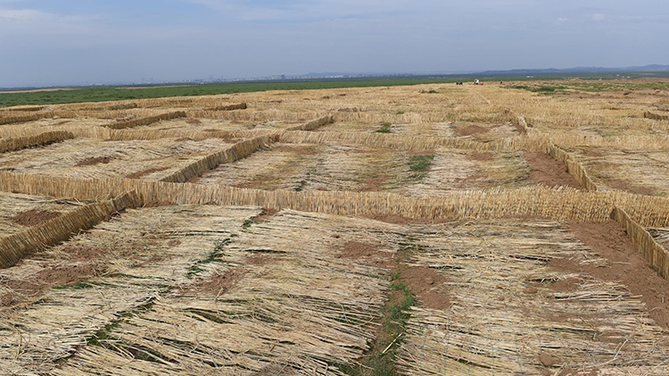 栽設4×4米網(wǎng)格狀沙幛、覆蓋草簾