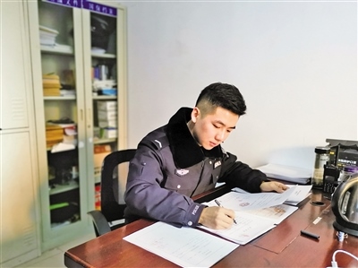 “我當人民警察還不到一年,沒想到就趕上了中國人民警察節(jié),太榮幸了。在這里,我祝愿所有的人民警察節(jié)日快樂,平平安安。”1月8日,呼和浩特市新城區(qū)公安分局西街派出所治安民警楊國清激動地說。2020年4月,23歲的楊國清正式成為西街派出所的一名治安民警,出警處警、處理案件成為他的日常工作。入職前,警校畢業(yè)再加上經過一段時間的實習,楊國清認為這些工作應該很容易,可當他真正走上工作崗位后才發(fā)現,并不像自己想象的那么簡單,需要學習的地方還很多。在工作中,他總是比別人多付出一份辛苦,不斷學習,不斷請教,在實踐中積累經驗,增強業(yè)務能力。“當作完第一份筆錄,簽上自己名字的那一刻,我才真正感覺到自己肩上的責任重大?!睏顕甯嬖V記者。除了日常處理案件外,楊國清和搭檔3天值一次班,一值就是24小時。只要接到報警,他們會第一時間趕到現場進行處理。打架斗毆、偷盜搶劫、鄰里糾紛……無論是深夜還是凌晨,哪里有警情他們就奔向哪里。警察的工作不僅辛苦還很危險,與家人也聚少離多。當記者問到是否后悔選擇這個職業(yè)時,楊國清堅定地說:“我從小的夢想就是當一名警察,保護人民、扶危救困,全力以赴維護一方平安。每當聽到一句感謝的話時,我覺得一切付出都是值得的?!?/p>