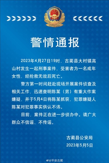 ·四川古藺偵破一起刑事案件,發(fā)布懸賞通告后七日內(nèi)告破。