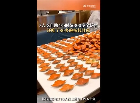 ·7人吃自助4小時炫300多個螃蟹擺滿桌,還吃了80多碗楊枝甘露,吃到餐廳下班。