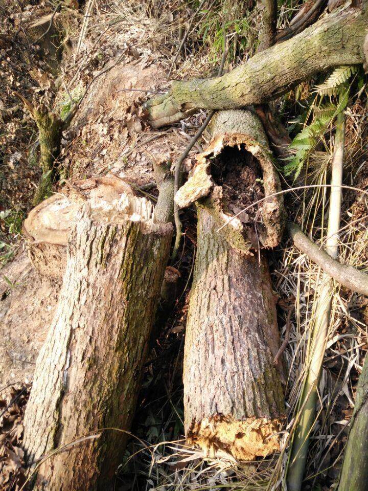 被砍伐售賣的香樟樹已有不少爛掉壞掉。圖片來源/受訪者供圖