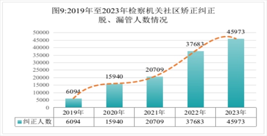 全國(guó)檢察機(jī)關(guān)共對(duì)社區(qū)矯正活動(dòng)不當(dāng)向有關(guān)單位提出糾正意見(jiàn)130315人,同比上升27.7%;已采納130375人,采納率100%(含積存)。糾正社區(qū)矯正對(duì)象脫管、漏管45973人,同比上升22%。共開(kāi)展巡回檢察3955次。通過(guò)巡回檢察發(fā)現(xiàn)問(wèn)題和線(xiàn)索64467個(gè),立案?jìng)刹?42人,巡回檢察與檢察偵查工作協(xié)同推進(jìn)。