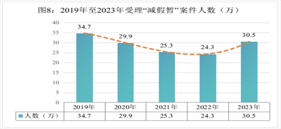 最高檢積極推動(dòng)《關(guān)于依法推進(jìn)假釋制度適用的指導(dǎo)意見(jiàn)》《關(guān)于進(jìn)一步規(guī)范暫予監(jiān)外執(zhí)行工作的意見(jiàn)》落地落實(shí),全國(guó)檢察機(jī)關(guān)共受理審查“減假暫”案件304522人,同比上升25.2%。