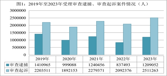 隨著新冠疫情防控轉(zhuǎn)段,我國(guó)經(jīng)濟(jì)回升向好,社會(huì)活躍度增加,同時(shí),檢察機(jī)關(guān)與有關(guān)部門(mén)一道依法從嚴(yán)懲處電信網(wǎng)絡(luò)詐騙等嚴(yán)重影響人民群眾安全感的犯罪,刑事犯罪案件總量增長(zhǎng)。2023年,全國(guó)檢察機(jī)關(guān)受理審查逮捕各類(lèi)犯罪828999件1209052人,同比分別上升49.8%、44.4%。審查后共批準(zhǔn)逮捕72.6萬(wàn)人,同比上升47.1%;受理審查起訴各類(lèi)犯罪1786635件2511263人,同比分別上升19.7%、20%。審查后決定起訴168.8萬(wàn)人,同比上升17.3%。