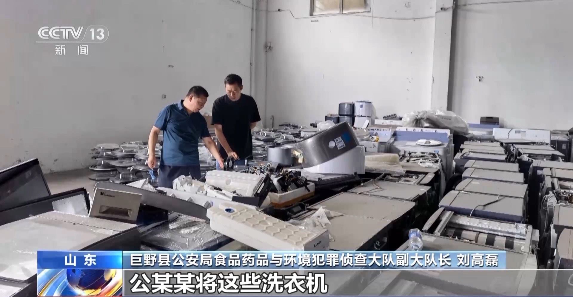巨野縣公安局食品藥品與環(huán)境犯罪偵查大隊指導員 薛永亮:這起案件涉案洗衣機數(shù)量達到7萬余臺,金額1.5億余元,這也是我們到目前為止發(fā)現(xiàn)的在國內(nèi)拆解行業(yè)最大的一起涉及知識產(chǎn)權(quán)的案件。截至目前,我們已經(jīng)查扣涉案洗衣機7000余臺,6名嫌疑人均已被公安機關(guān)采取強制措施。