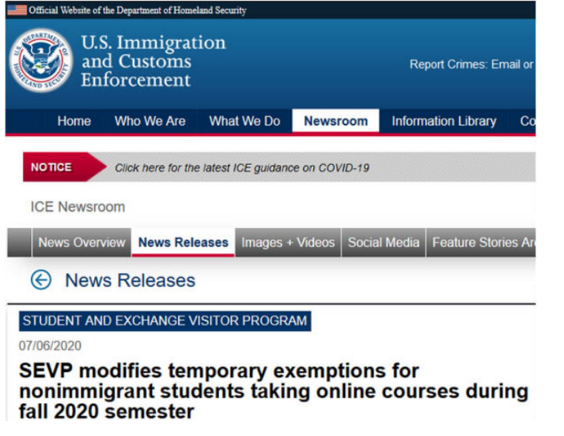 當?shù)貢r間7月6日,針對美國高校今年秋天將開始的課程,美國移民與海關(guān)執(zhí)法局(ICE)發(fā)布了一項新規(guī)定,大致是這么幾個意思: