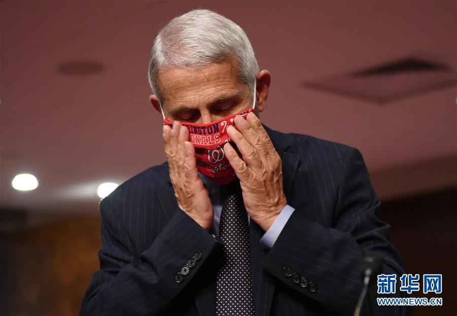 這是6月30日,在美國華盛頓,美國白宮冠狀病毒應(yīng)對工作組重要成員、國家過敏癥和傳染病研究所所長安東尼·福奇出席參議院衛(wèi)生、教育、勞工與養(yǎng)老金委員會(huì)聽證會(huì)。安東尼·福奇于當(dāng)日表示,如果美國目前的新冠疫情形勢得不到扭轉(zhuǎn),全美將有可能每天增加10萬病例。新華社發(fā)(凱文·迪奇攝)