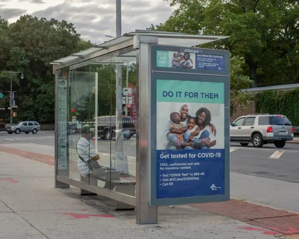 △美國紐約布魯克林一個(gè)公交車站的免費(fèi)核酸檢測廣告 (圖片來源:《紐約時(shí)報(bào)》)