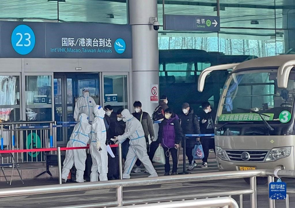 3月14日,乘坐臨時(shí)航班抵達(dá)大連周水子國際機(jī)場的中國公民準(zhǔn)備前往隔離酒店。新華社發(fā)(大連機(jī)場提供)