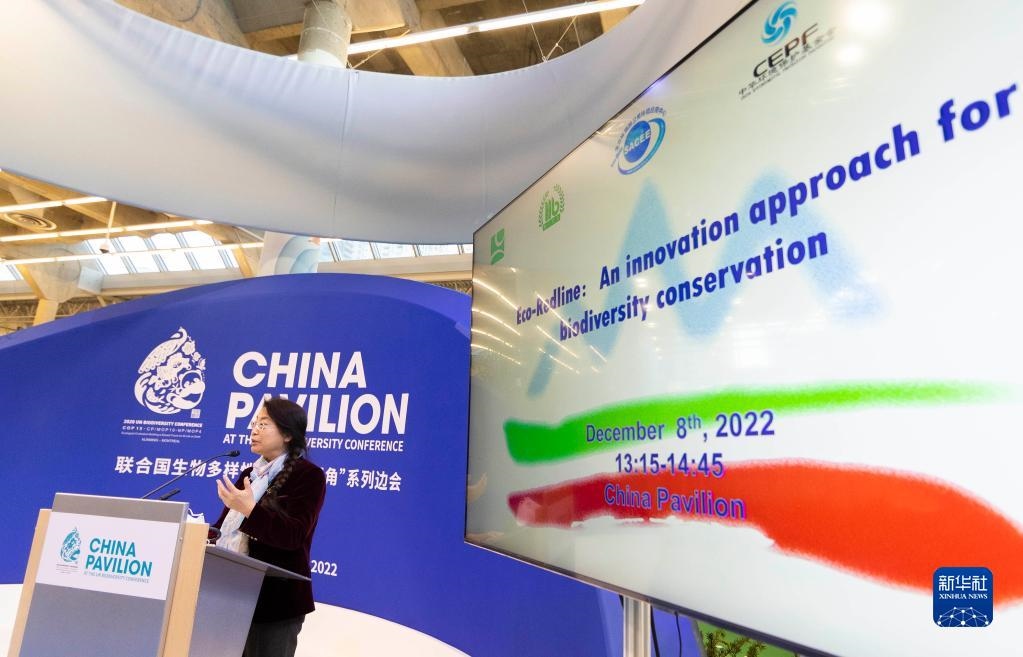 12月8日,在加拿大蒙特利爾舉行的《生物多樣性公約》第十五次締約方大會(huì)(COP15)第二階段會(huì)議上,中國(guó)角開(kāi)展的一場(chǎng)邊會(huì)活動(dòng)聚焦生態(tài)保護(hù)紅線(xiàn)。 新華社發(fā)(鄒崢攝)
