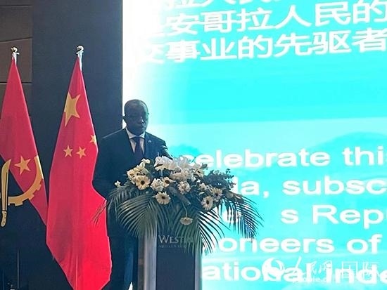 安哥拉駐華大使若昂·薩爾瓦多·多斯·桑托斯·內(nèi)圖致辭。人民網(wǎng) 武妍虹攝