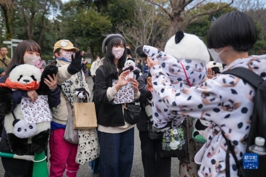 2月19日,在日本東京上野動(dòng)物園,游客排隊(duì)等待與大熊貓“香香”告別。新華社記者 張笑宇 攝