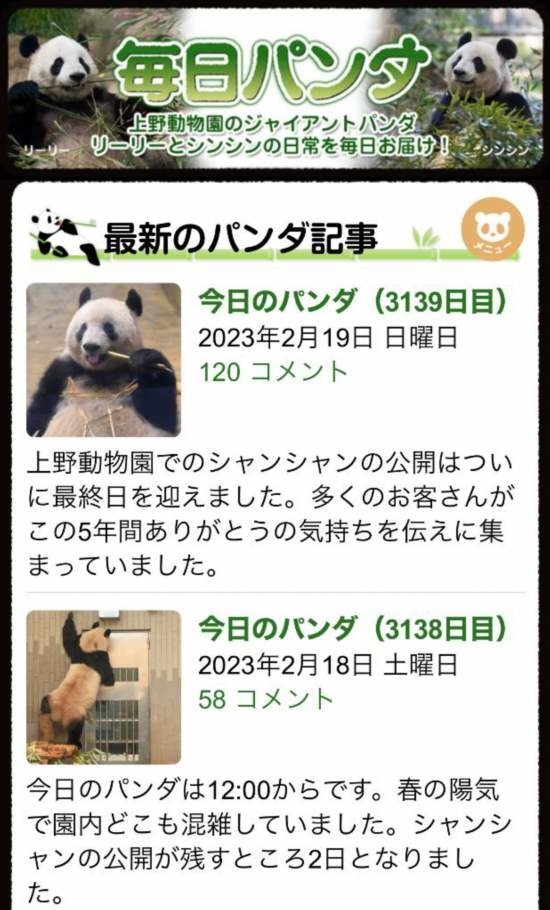日本熊貓迷高氏貴博創(chuàng)建的“每日熊貓”博客。網(wǎng)絡截圖