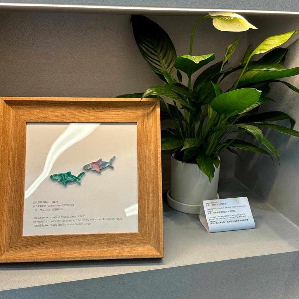 論壇主題展展示的用回收塑料制作的創(chuàng)意畫(huà)品。新華社記者陳凱姿 攝
