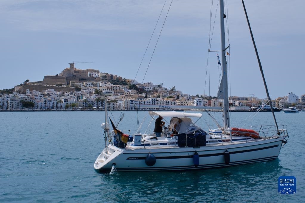 4月10日,一艘帆船駛?cè)胛靼嘌腊屠⒗锶簫u伊維薩島港口。