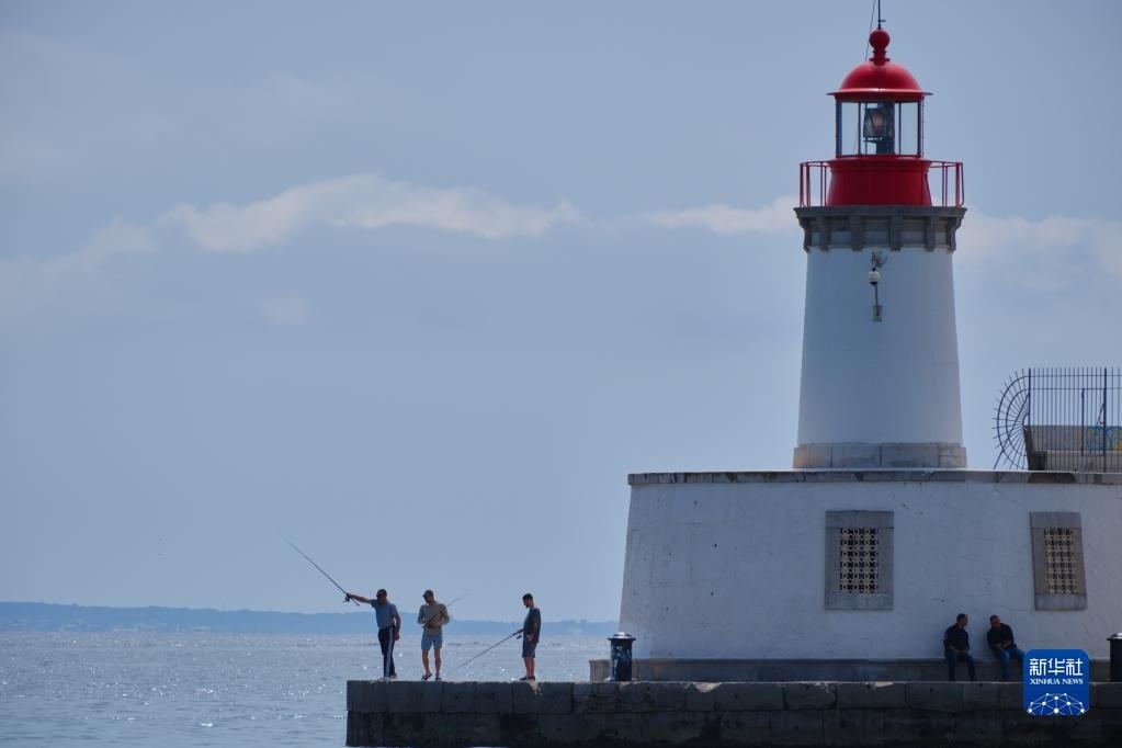 4月10日,人們?cè)谖靼嘌腊屠⒗锶簫u伊維薩島港口釣魚。