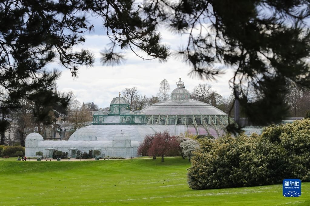 4月14日,人們?cè)诒壤麜r(shí)布魯塞爾參觀拉肯宮王家溫室。