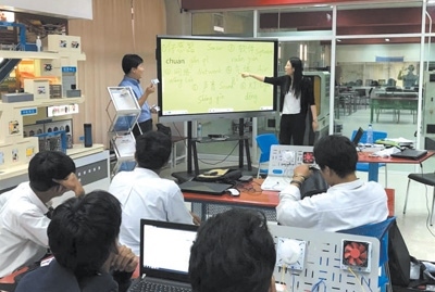 2016年3月,由天津渤海職業(yè)技術(shù)學(xué)院與泰國大城技術(shù)學(xué)院共同建設(shè)的全球首家魯班工坊正式揭牌,標(biāo)志著中國職業(yè)教育走出國門,與其他國家分享優(yōu)質(zhì)職業(yè)教育資源。泰國魯班工坊采用“學(xué)歷教育+職業(yè)培訓(xùn)”方式,匯聚先進(jìn)教學(xué)裝備,集中優(yōu)質(zhì)雙語教學(xué)資源,設(shè)立了自動(dòng)化生產(chǎn)線教學(xué)區(qū)、仿生機(jī)器人學(xué)習(xí)體驗(yàn)區(qū)等15個(gè)教學(xué)實(shí)踐區(qū),讓學(xué)生們能夠更加直觀地在各種機(jī)器上操作演練。